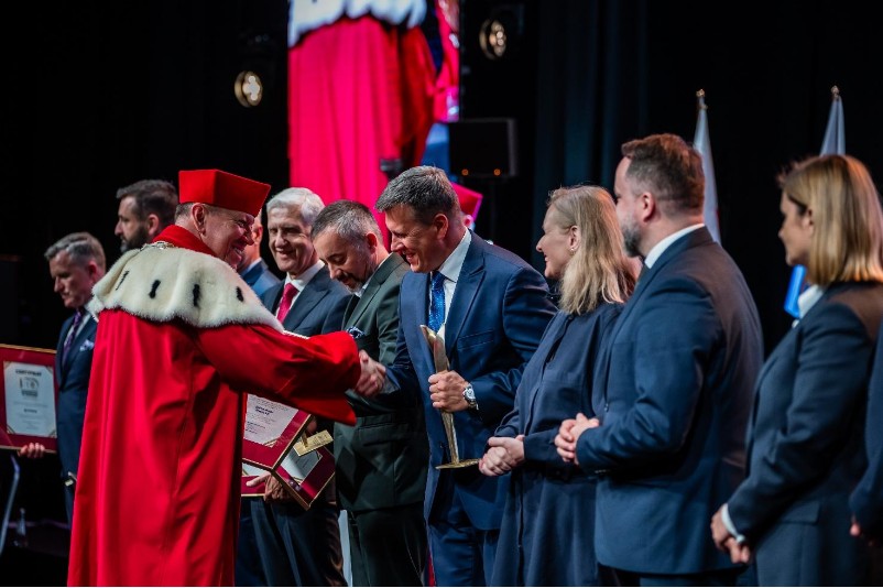 Statuetka i certyfikat zostały odebrane 28 maja 2025 r. podczas Uroczystego Posiedzenia Senatu w Hali Widowiskowo-Sportowej UEK przez Przedstawiciela Partnera, Pana Rafała Sobczyka - Wiceprezesa Zarządu.